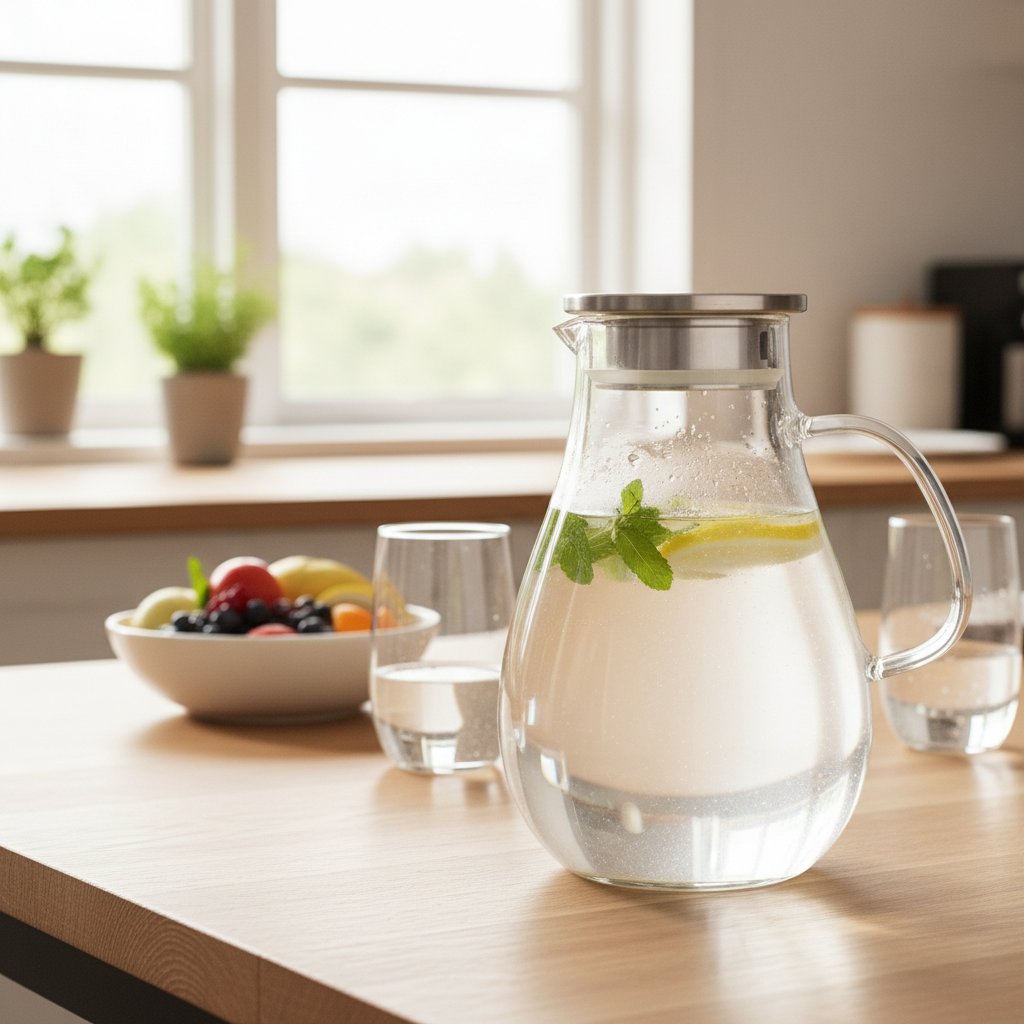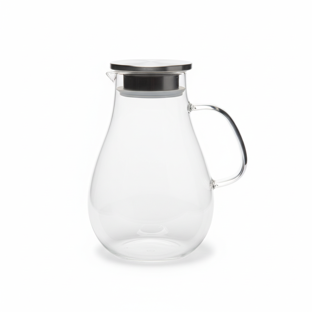Kjo kane qelqi me kapacitet 2 litra është ideale për servirjen e ujit apo pijeve të ndryshme, duke kombinuar pamjen moderne me funksionalitetin e përditshëm. Trupi prej qelqi transparent me fund rrethor i jep një stil të veçantë dhe e bën të lehtë kontrollin e sasisë së mbetur.