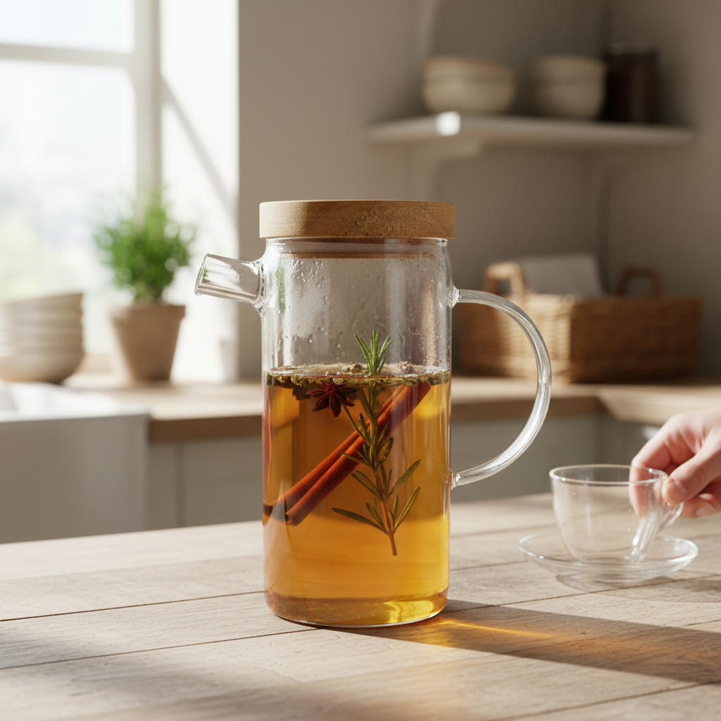 Kjo shishe vaji prej xhami transparent me dorëz ergonomike dhe grykë për derdhje të lehtë është ideale për ruajtjen dhe servimin e vajit ose lëngjeve të ngjashme në kuzhinën tuaj. Kapaku i saj prej drruri natyral ndihmon në mbajtjen e aromës dhe freskisë, ndërsa dizajni modern kombinohet lehtësisht me çdo stil tavoline. Me kapacitet rreth 800 ml, ofron hapësirë të mjaftueshme për përdorim të përditshëm pa zënë shumë vend.